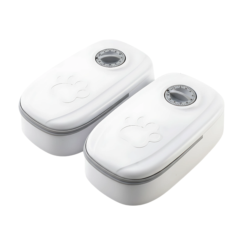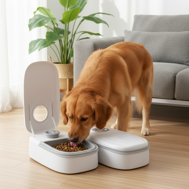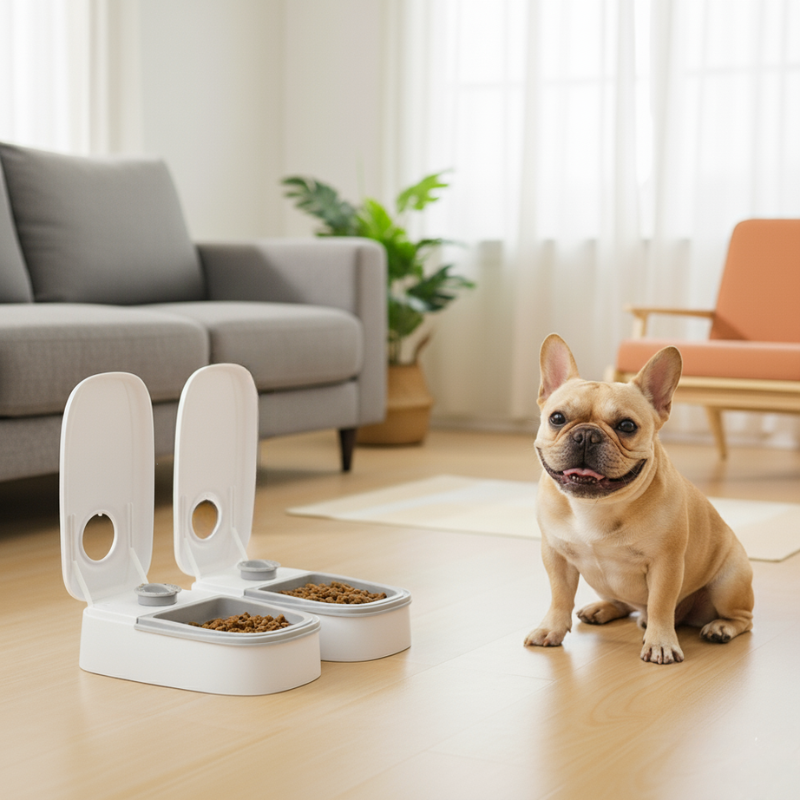 Weet dat je hond op tijd en veilig zijn maaltijden krijgt, zelfs tijdens drukke dagen of afwezigheid.